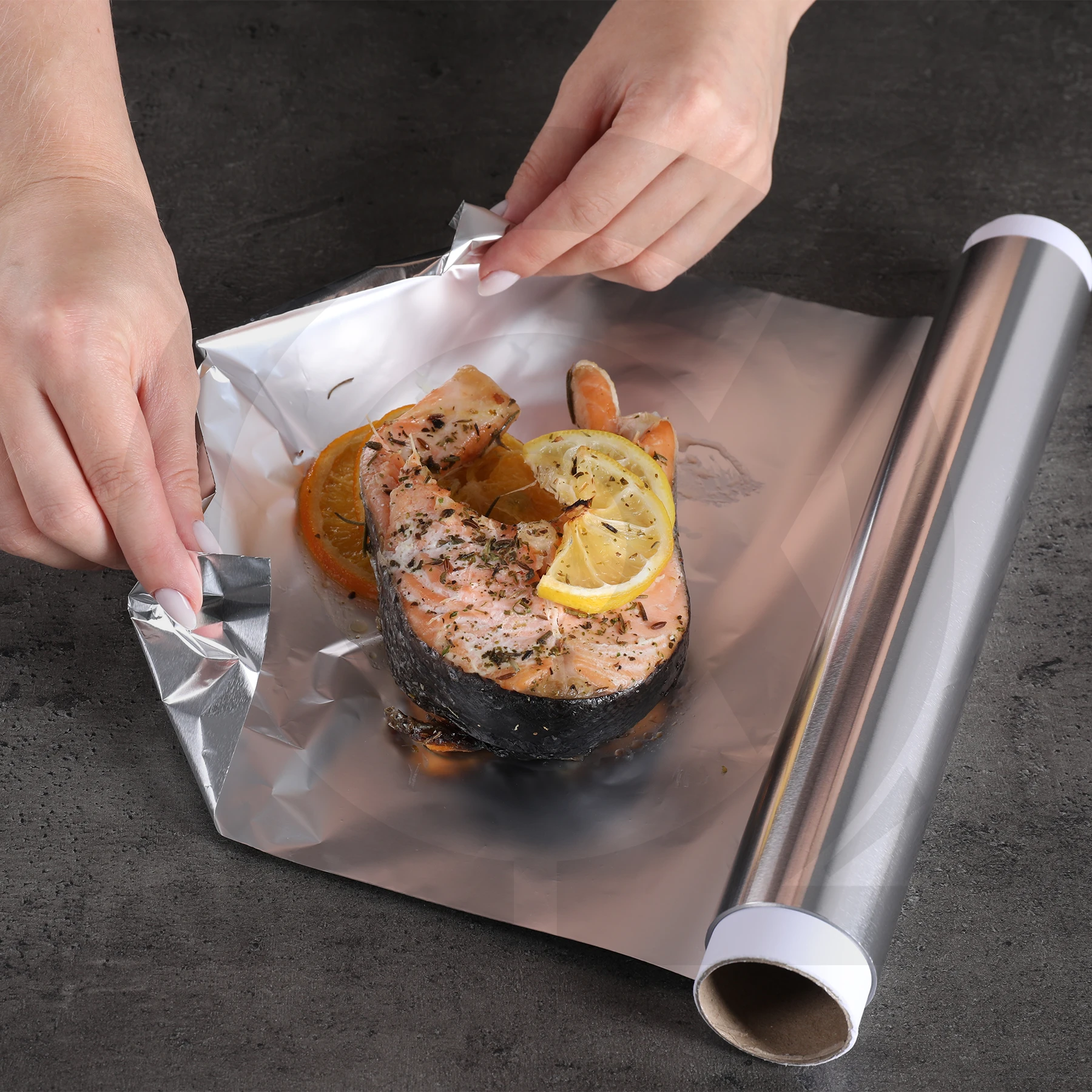 Our high-quality heavy-duty Aluminum Foil Rolls are crafted to meet the diverse needs of food preservation, preparation, and packaging. Our Aluminum Foil Rolls provide an effective barrier against moisture, air, and contaminants, ensuring food remains fresh and well-protected. Known for their durability and excellent thermal conductivity, these foil rolls are ideal for both home and commercial kitchen use, as well as food service operations. Whether for cooking, wrapping, or storing, our Aluminum Foil Rolls offer a high-quality solution designed to withstand extreme temperatures and maintain the integrity of food items. Our Aluminum Foil Rolls are certified to the HACCP CAC/RCP 1-1969 standard, ensuring the highest level of food safety and quality management.